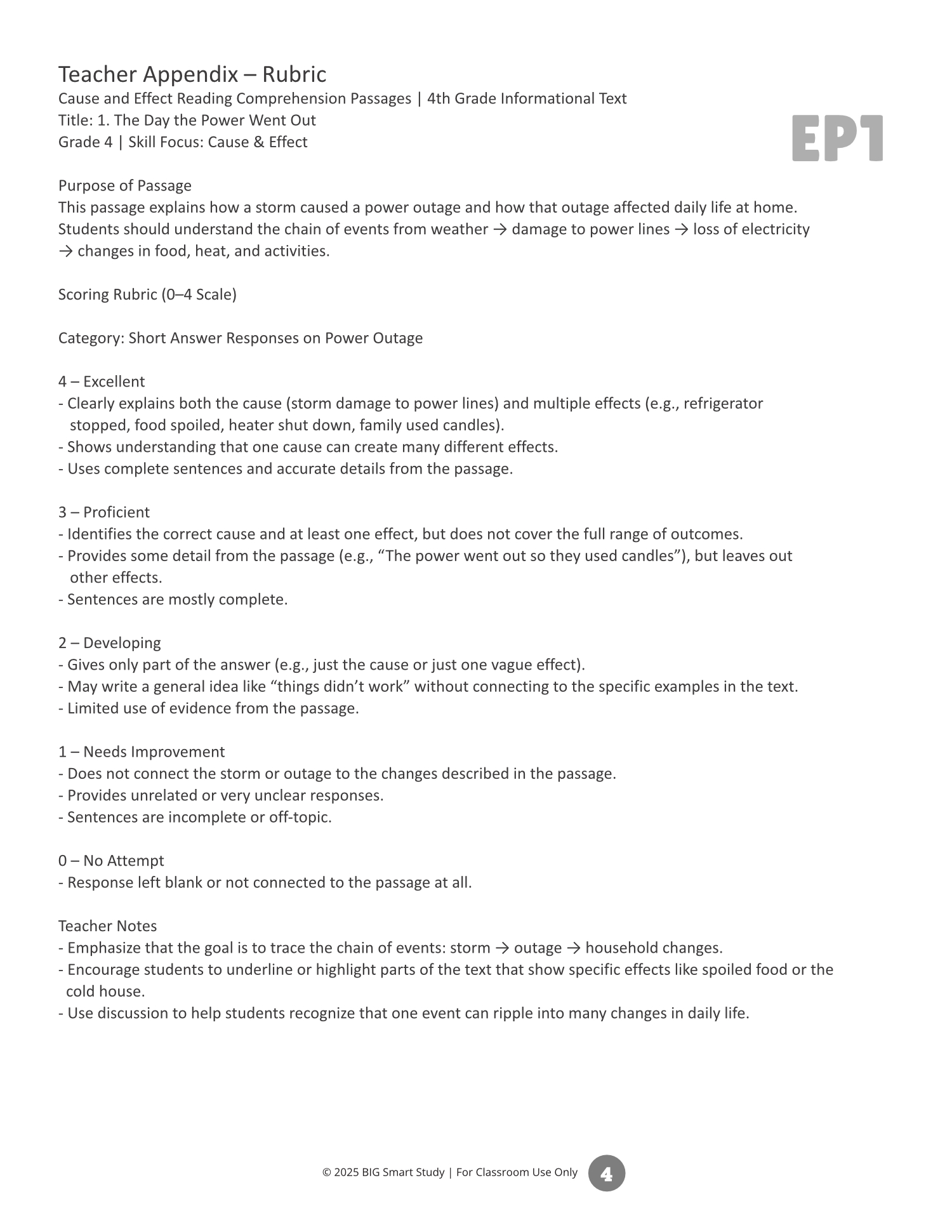Strengthen your students’ reading comprehension with this engaging set of **Cause & Effect passages designed for Grade 4**. Each passage is approximately 260 words, making it the perfect length for a single class period. The texts are written in an **informational, nonfiction style** with real-world science and nature themes.